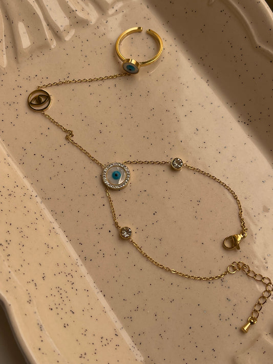 Venus Evil Eye Ring and Bracelet Set